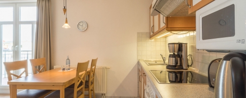 Neben der gehobenen Ausstattung verfügt die Wohnung über Kabel-TV, Radio und kostenfreien Internetzugang. Die voll ausgestattete Küche lässt viel Raum für Ihre Kreativität. So stehen Backofen, Mikrowelle, Toaster, Kaffemaschine und Ceranfeld zu Ihrer Verfügung, während sich der Abwasch dank Spülmaschine von allein erledigt. Münzwaschmaschine und -trockner stehen zur Verfügung.