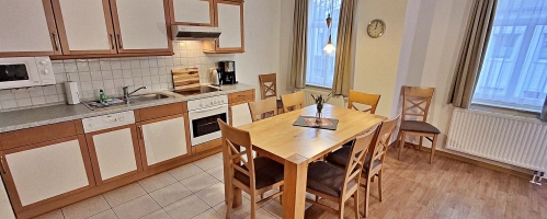 Neben der gehobenen Ausstattung verfügt die Wohnung über Kabel-TV, Radio und kostenfreien Internetzugang. Die voll ausgestattete Küche lässt viel Raum für Ihre Kreativität. So stehen Backofen, Mikrowelle, Toaster, Kaffeemaschine und Ceranfeld zu Ihrer Verfügung, während sich der Abwasch dank Spülmaschine von allein erledigt. Münzwaschmaschine und -trockner stehen zur Verfügung.